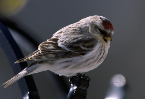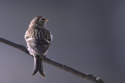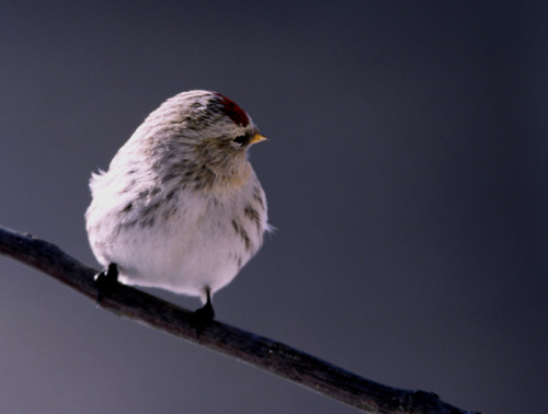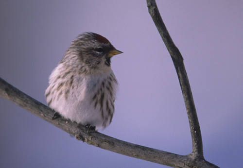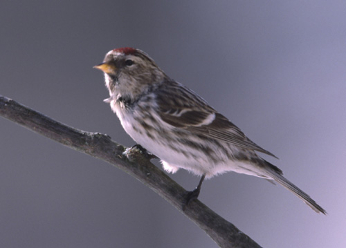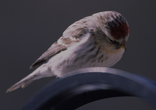 On February 1, 2004 I noticed a pallid Redpoll at a feeder on a friends private residence near Copake Lake in Columbia County, New York. Several (as many as 5) other Redpolls were present. I was able to obtain several photos of the bird with a tripod mounted Canon 600mm F4.0 image stabilized lens and a Canon 1.4x II teleconverter attached to a Canon Eos 1v camera. The photos were taken on Fuji Sensia 100 ASA film and scanned with a 5400 DPI Minolta scanner.